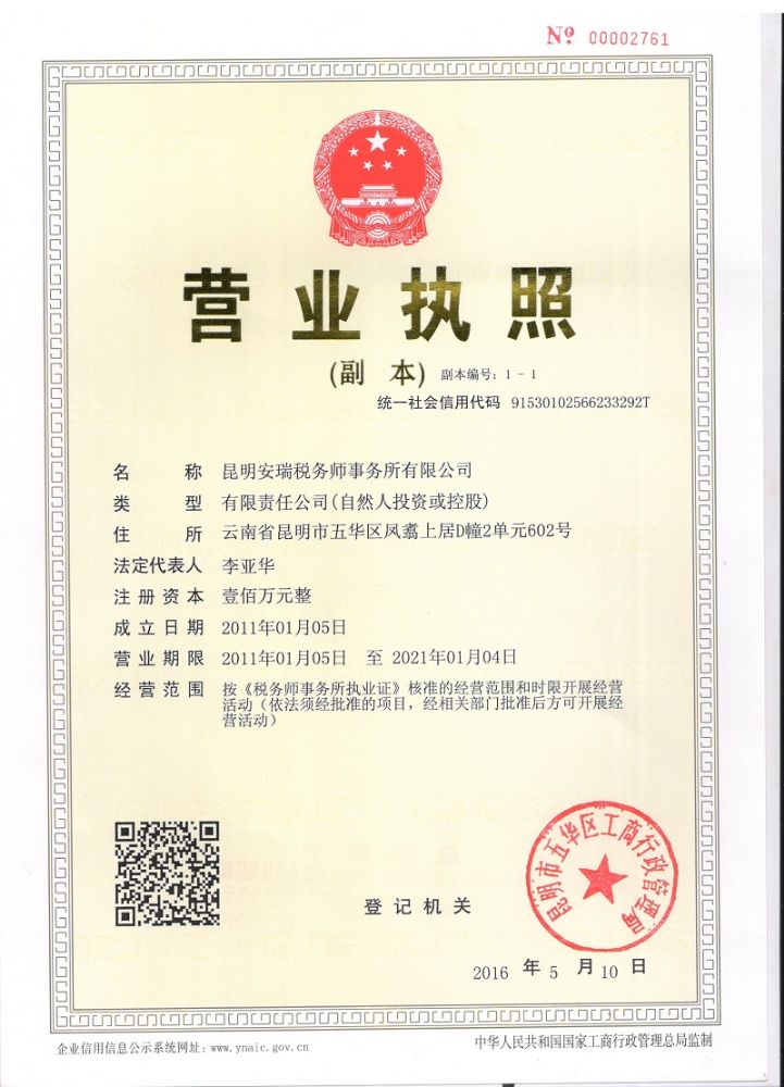 ·安瑞事務所是云南省地方稅務局的入圍事務…